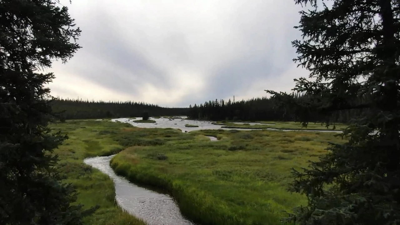 Drone fly-over footage from above the Rivière La Martre as it passes through the forests and open fields in the wild landscape between the Tlicho communities of Behchokǫ̀ and Whatì found in Canada’s Northwest Territories. The montage of clips contain overhead shots of river rapids, dense forests, abandoned cabins, lakes, and a waterfall.